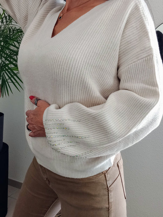 ÉpuiséPull ecru strass